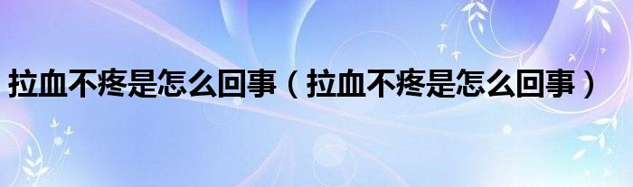 摘要大家好,知識(shí)小編來為大家解答以上的問題。拉血不疼是怎么回事,拉血不疼是怎么回事很多人還不知道,現(xiàn)在讓我們一起來看看吧!如果血液不痛