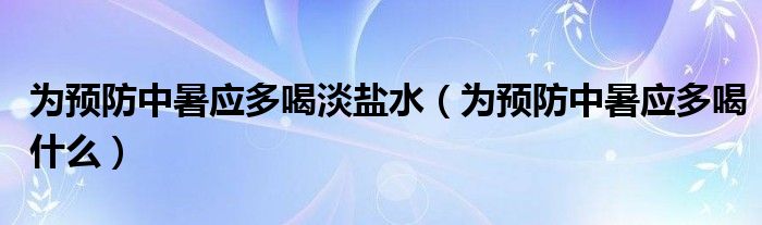 大家好,知識小編來為大家解答以上的問題。為預(yù)防中暑應(yīng)多喝淡鹽水,為預(yù)防中暑應(yīng)多喝什么很多人還不知道,現(xiàn)在讓我們一起來看看吧!