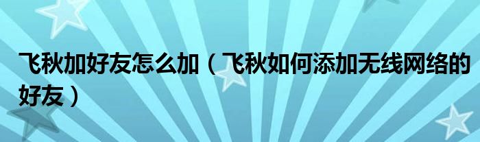 大家好,小生來為大家講解下。飛秋加好友怎么加,飛秋如何添加無線網(wǎng)絡(luò)的好友很多人還不知道,現(xiàn)在讓我們一起來看看吧!