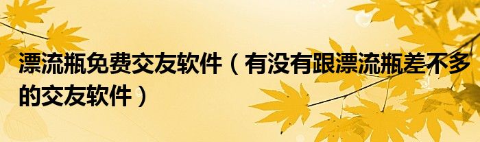 摘要大家好,小生來為大家講解下。漂流瓶免費交友軟件,有沒有跟漂流瓶差不多的交友軟件很多人還不知道,現(xiàn)在讓我們一起來看看吧!1、類似漂流