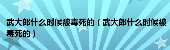 大家好,小生來為大家講解下。武大郎什么時候被毒死的,武大郎什么時候被毒死的很多人還不知道,現(xiàn)在讓我們一起來看看吧!