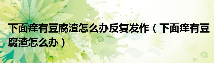 大家好,知識小編來為大家解答以上的問題。下面癢有豆腐渣怎么辦反復(fù)發(fā)作,下面癢有豆腐渣怎么辦很多人還不知道,現(xiàn)在讓我們一起來看看吧!