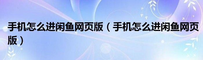 大家好,小生來(lái)為大家講解下。手機(jī)怎么進(jìn)閑魚網(wǎng)頁(yè)版,手機(jī)怎么進(jìn)閑魚網(wǎng)頁(yè)版很多人還不知道,現(xiàn)在讓我們一起來(lái)看看吧!