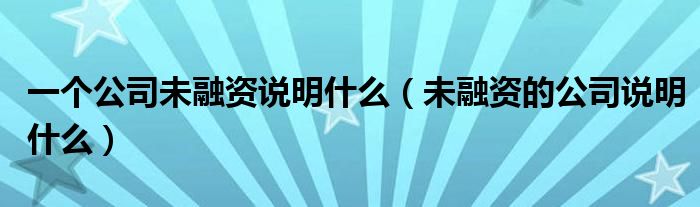 大家好,小生來為大家講解下。一個(gè)公司未融資說明什么,未融資的公司說明什么很多人還不知道,現(xiàn)在讓我們一起來看看吧!
