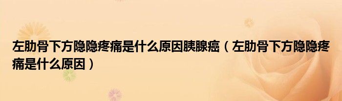 摘要大家好,知識小編來為大家解答以上的問題。左肋骨下方隱隱疼痛是什么原因胰腺癌,左肋骨下方隱隱疼痛是什么原因很多人還不知道,現(xiàn)在讓我們