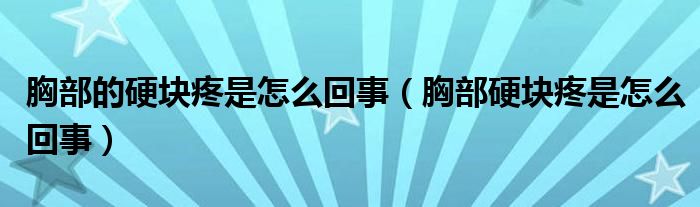 大家好,知識小編來為大家解答以上的問題。胸部的硬塊疼是怎么回事,胸部硬塊疼是怎么回事很多人還不知道,現(xiàn)在讓我們一起來看看吧!