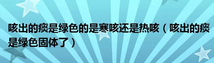 大家好,知識小編來為大家解答以上的問題。咳出的痰是綠色的是寒咳還是熱咳,咳出的痰是綠色固體了很多人還不知道,現(xiàn)在讓我們一起來看看吧!