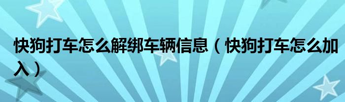 大家好,小生來(lái)為大家講解下??旃反蜍?chē)怎么解綁車(chē)輛信息,快狗打車(chē)怎么加入很多人還不知道,現(xiàn)在讓我們一起來(lái)看看吧!