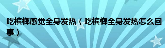 大家好,知識(shí)小編來為大家解答以上的問題。吃檳榔感覺全身發(fā)熱,吃檳榔全身發(fā)熱怎么回事很多人還不知道,現(xiàn)在讓我們一起來看看吧!