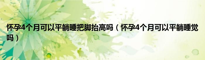 大家好,知識(shí)小編來(lái)為大家解答以上的問(wèn)題。懷孕4個(gè)月可以平躺睡把腳抬高嗎,懷孕4個(gè)月可以平躺睡覺(jué)嗎很多人還不知道,現(xiàn)在讓我們一起來(lái)看看吧!