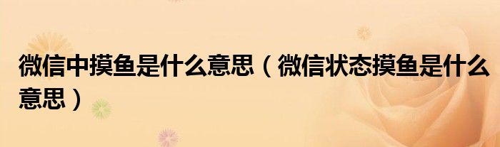 大家好,小生來為大家講解下。微信中摸魚是什么意思,微信狀態(tài)摸魚是什么意思很多人還不知道,現(xiàn)在讓我們一起來看看吧!