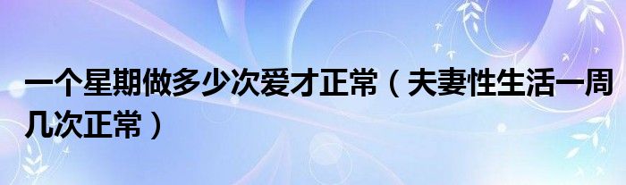 大家好,知識(shí)小編來(lái)為大家解答以上的問(wèn)題。一個(gè)星期做多少次愛(ài)才正常,夫妻性生活一周幾次正常很多人還不知道,現(xiàn)在讓我們一起來(lái)看看吧!