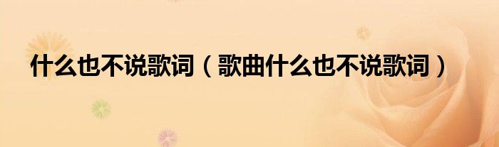 大家好,伊人來(lái)為大家解答以上問(wèn)題。什么也不說(shuō)歌詞,歌曲什么也不說(shuō)歌詞很多人還不知道,現(xiàn)在讓我們一起來(lái)看看吧!