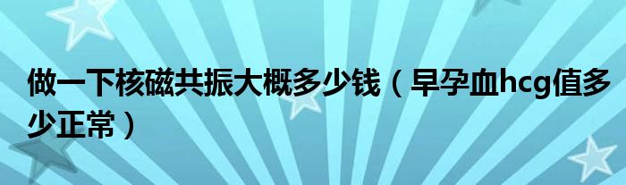 大家好,知識(shí)小編來(lái)為大家解答以上的問(wèn)題。做一下核磁共振大概多少錢,早孕血hcg值多少正常很多人還不知道,現(xiàn)在讓我們一起來(lái)看看吧!