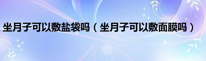大家好,知識小編來為大家解答以上的問題。坐月子可以敷鹽袋嗎,坐月子可以敷面膜嗎很多人還不知道,現(xiàn)在讓我們一起來看看吧!