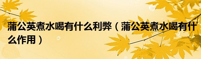 大家好,知識小編來為大家解答以上的問題。蒲公英煮水喝有什么利弊,蒲公英煮水喝有什么作用很多人還不知道,現(xiàn)在讓我們一起來看看吧!