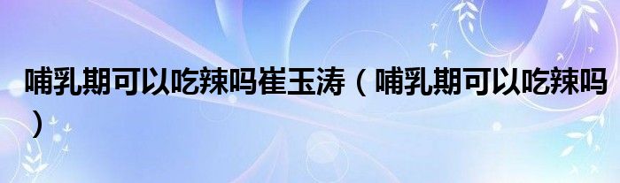 大家好,知識(shí)小編來(lái)為大家解答以上的問(wèn)題。哺乳期可以吃辣嗎崔玉濤,哺乳期可以吃辣嗎很多人還不知道,現(xiàn)在讓我們一起來(lái)看看吧!