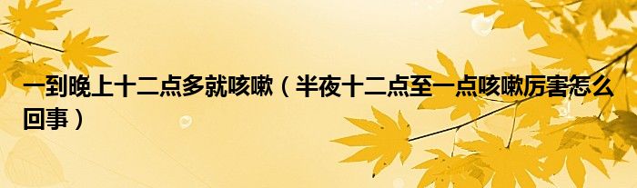 大家好,知識(shí)小編來為大家解答以上的問題。一到晚上十二點(diǎn)多就咳嗽,半夜十二點(diǎn)至一點(diǎn)咳嗽厲害怎么回事很多人還不知道,現(xiàn)在讓我們一起來看看吧!