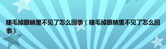 摘要大家好,知識小編來為大家解答以上的問題。睫毛掉眼睛里不見了怎么回事,睫毛掉眼睛里不見了怎么回事很多人還不知道,現(xiàn)在讓我們一起來看看