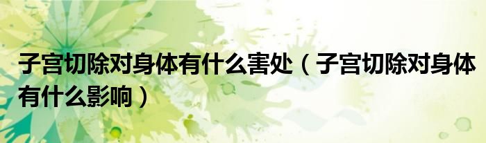摘要大家好,知識(shí)小編來(lái)為大家解答以上的問(wèn)題。子宮切除對(duì)身體有什么害處,子宮切除對(duì)身體有什么影響很多人還不知道,現(xiàn)在讓我們一起來(lái)看看吧!