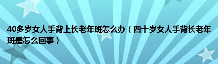 摘要大家好,知識(shí)小編來(lái)為大家解答以上的問(wèn)題。40多歲女人手背上長(zhǎng)老年斑怎么辦,四十歲女人手背長(zhǎng)老年斑是怎么回事很多人還不知道,現(xiàn)在讓我們