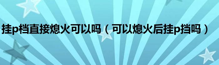 大家好,小育來為大家講解下。掛p檔直接熄火可以嗎,可以熄火后掛p擋嗎很多人還不知道,現(xiàn)在讓我們一起來看看吧!