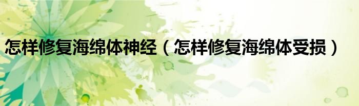 大家好,知識小編來為大家解答以上的問題。怎樣修復海綿體神經(jīng),怎樣修復海綿體受損很多人還不知道,現(xiàn)在讓我們一起來看看吧!