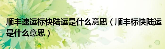 大家好,小育來(lái)為大家講解下。順豐速運(yùn)標(biāo)快陸運(yùn)是什么意思,順豐標(biāo)快陸運(yùn)是什么意思很多人還不知道,現(xiàn)在讓我們一起來(lái)看看吧!