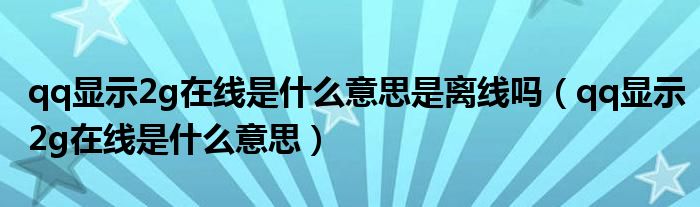 大家好,小育來為大家講解下。qq顯示2g在線是什么意思是離線嗎,qq顯示2g在線是什么意思很多人還不知道,現(xiàn)在讓我們一起來看看吧!