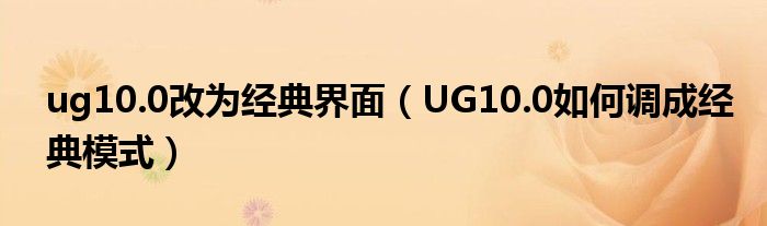 大家好,小育來(lái)為大家講解下。ug10.0改為經(jīng)典界面,UG10.0如何調(diào)成經(jīng)典模式很多人還不知道,現(xiàn)在讓我們一起來(lái)看看吧!