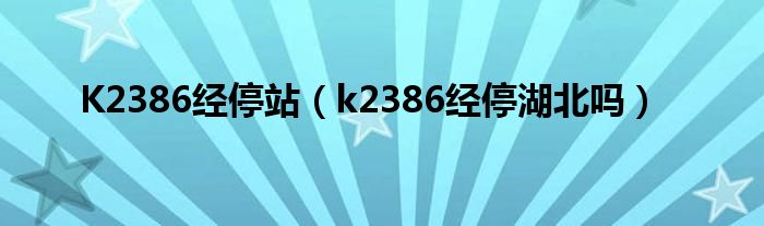 大家好,小育來為大家講解下。K2386經(jīng)停站,k2386經(jīng)停湖北嗎很多人還不知道,現(xiàn)在讓我們一起來看看吧!