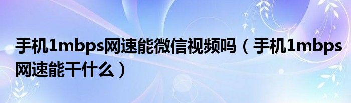 大家好,小育來為大家講解下。手機1mbps網速能微信視頻嗎,手機1mbps網速能干什么很多人還不知道,現在讓我們一起來看看吧!