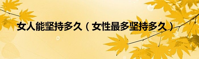 大家好,知識小編來為大家解答以上的問題。女人能堅持多久,女性最多堅持多久很多人還不知道,現(xiàn)在讓我們一起來看看吧!