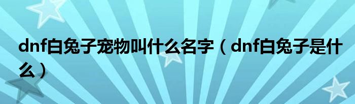 大家好,小育來為大家講解下。dnf白兔子寵物叫什么名字,dnf白兔子是什么很多人還不知道,現(xiàn)在讓我們一起來看看吧!