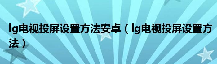 大家好,小育來為大家講解下。lg電視投屏設(shè)置方法安卓,lg電視投屏設(shè)置方法很多人還不知道,現(xiàn)在讓我們一起來看看吧!