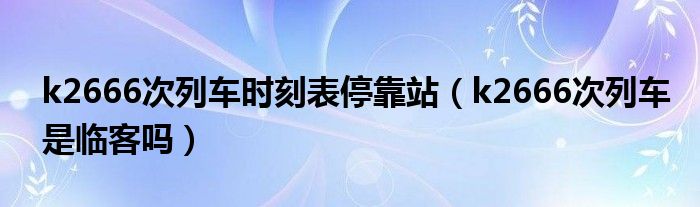 大家好,小育來(lái)為大家講解下。k2666次列車(chē)時(shí)刻表??空?,k2666次列車(chē)是臨客嗎很多人還不知道,現(xiàn)在讓我們一起來(lái)看看吧!