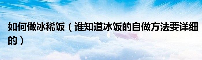 大家好,小育來為大家講解下。如何做冰稀飯,誰知道冰飯的自做方法要詳細(xì)的很多人還不知道,現(xiàn)在讓我們一起來看看吧!