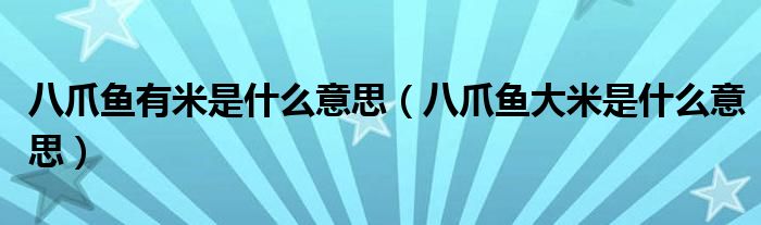 大家好,小育來為大家講解下。八爪魚有米是什么意思,八爪魚大米是什么意思很多人還不知道,現(xiàn)在讓我們一起來看看吧!
