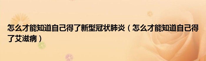 大家好,知識小編來為大家解答以上的問題。怎么才能知道自己得了新型冠狀肺炎,怎么才能知道自己得了艾滋病很多人還不知道,現(xiàn)在讓我們一起來看看吧!