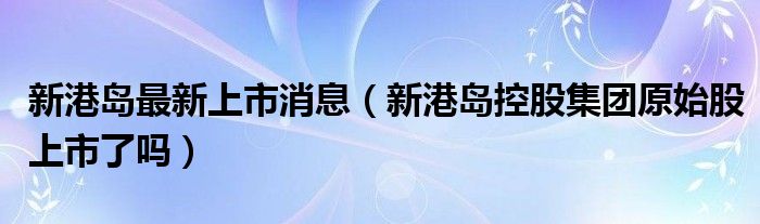 大家好,小育來為大家講解下。新港島最新上市消息,新港島控股集團(tuán)原始股上市了嗎很多人還不知道,現(xiàn)在讓我們一起來看看吧!