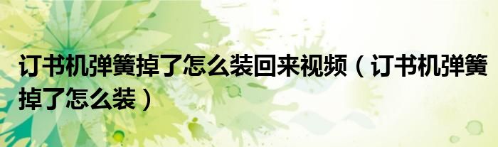 大家好,小育來為大家講解下。訂書機彈簧掉了怎么裝回來視頻,訂書機彈簧掉了怎么裝很多人還不知道,現(xiàn)在讓我們一起來看看吧!
