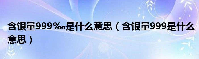 大家好,小育來(lái)為大家講解下。含銀量999‰是什么意思,含銀量999是什么意思很多人還不知道,現(xiàn)在讓我們一起來(lái)看看吧!