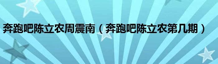 大家好,小育來為大家講解下。奔跑吧陳立農(nóng)周震南,奔跑吧陳立農(nóng)第幾期很多人還不知道,現(xiàn)在讓我們一起來看看吧!