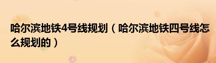 摘要大家好,小育來(lái)為大家講解下。哈爾濱地鐵4號(hào)線規(guī)劃,哈爾濱地鐵四號(hào)線怎么規(guī)劃的很多人還不知道,現(xiàn)在讓我們一起來(lái)看看吧!1、哈爾濱地鐵4