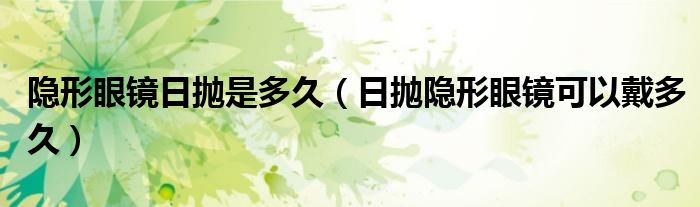 大家好,伊人來(lái)為大家解答以上問(wèn)題。隱形眼鏡日拋是多久,日拋隱形眼鏡可以戴多久很多人還不知道,現(xiàn)在讓我們一起來(lái)看看吧!
