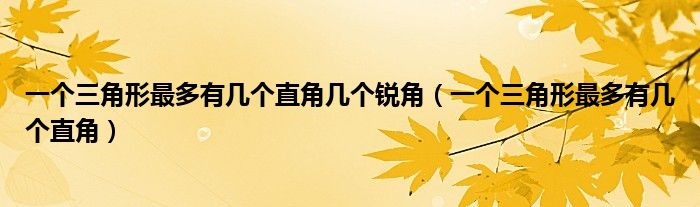 大家好,小育來為大家講解下。一個三角形最多有幾個直角幾個銳角,一個三角形最多有幾個直角很多人還不知道,現(xiàn)在讓我們一起來看看吧!