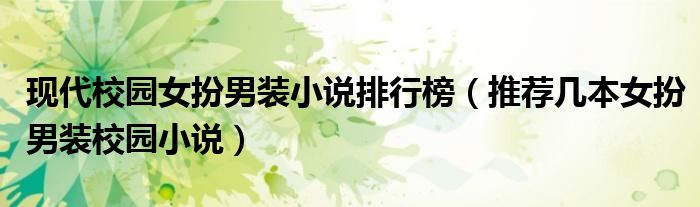 大家好,小育來為大家講解下?,F代校園女扮男裝小說排行榜,推薦幾本女扮男裝校園小說很多人還不知道,現在讓我們一起來看看吧!