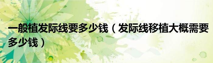 摘要大家好,知識小編來為大家解答以上的問題。一般植發(fā)際線要多少錢,發(fā)際線移植大概需要多少錢很多人還不知道,現(xiàn)在讓我們一起來看看吧!發(fā)際