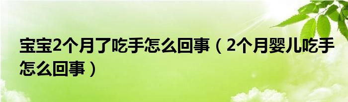 大家好,知識小編來為大家解答以上的問題。寶寶2個月了吃手怎么回事,2個月嬰兒吃手怎么回事很多人還不知道,現(xiàn)在讓我們一起來看看吧!