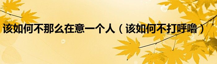 大家好,知識小編來為大家解答以上的問題。該如何不那么在意一個人,該如何不打呼嚕很多人還不知道,現(xiàn)在讓我們一起來看看吧!